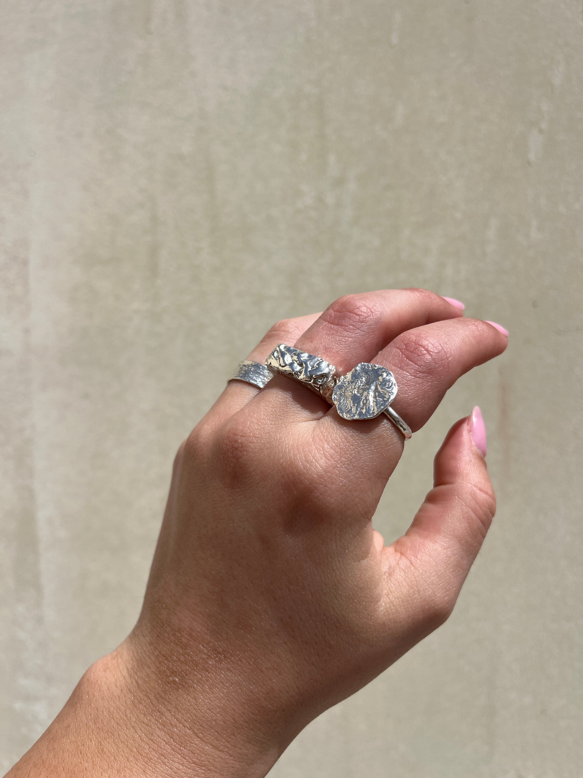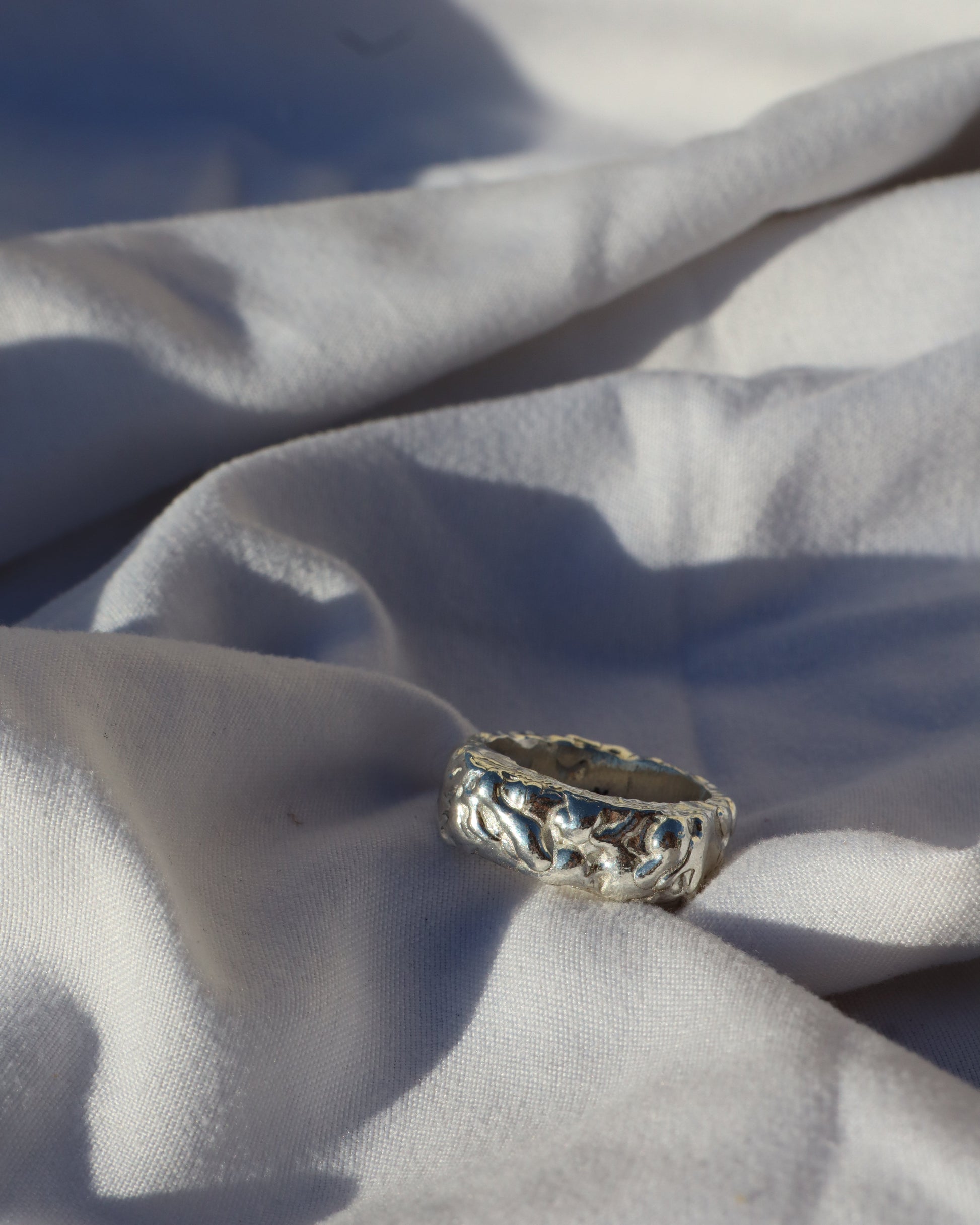 טבעת חותם צ'אנקית בטקסטורת טפטופים וכסף שרוף