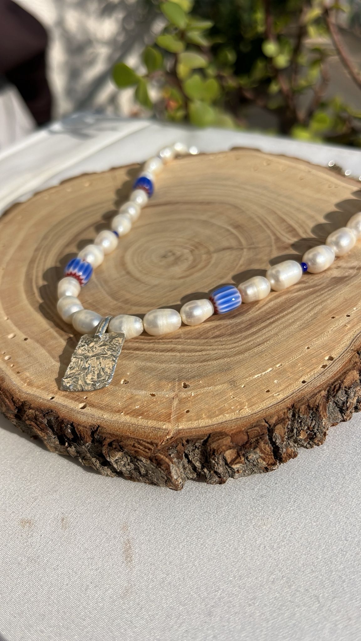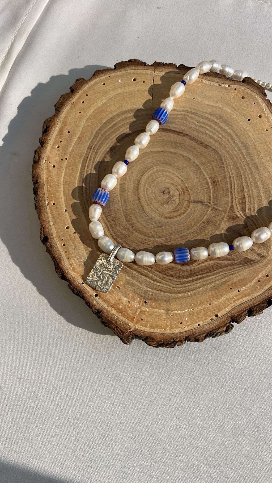 מחרוזת פנינים אמיתיות עם תליון לוסי ונגיעות קיץ כחולות
