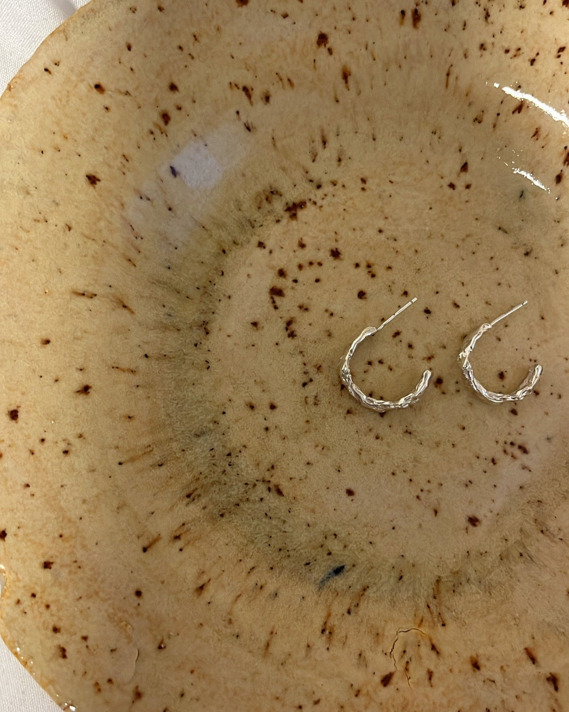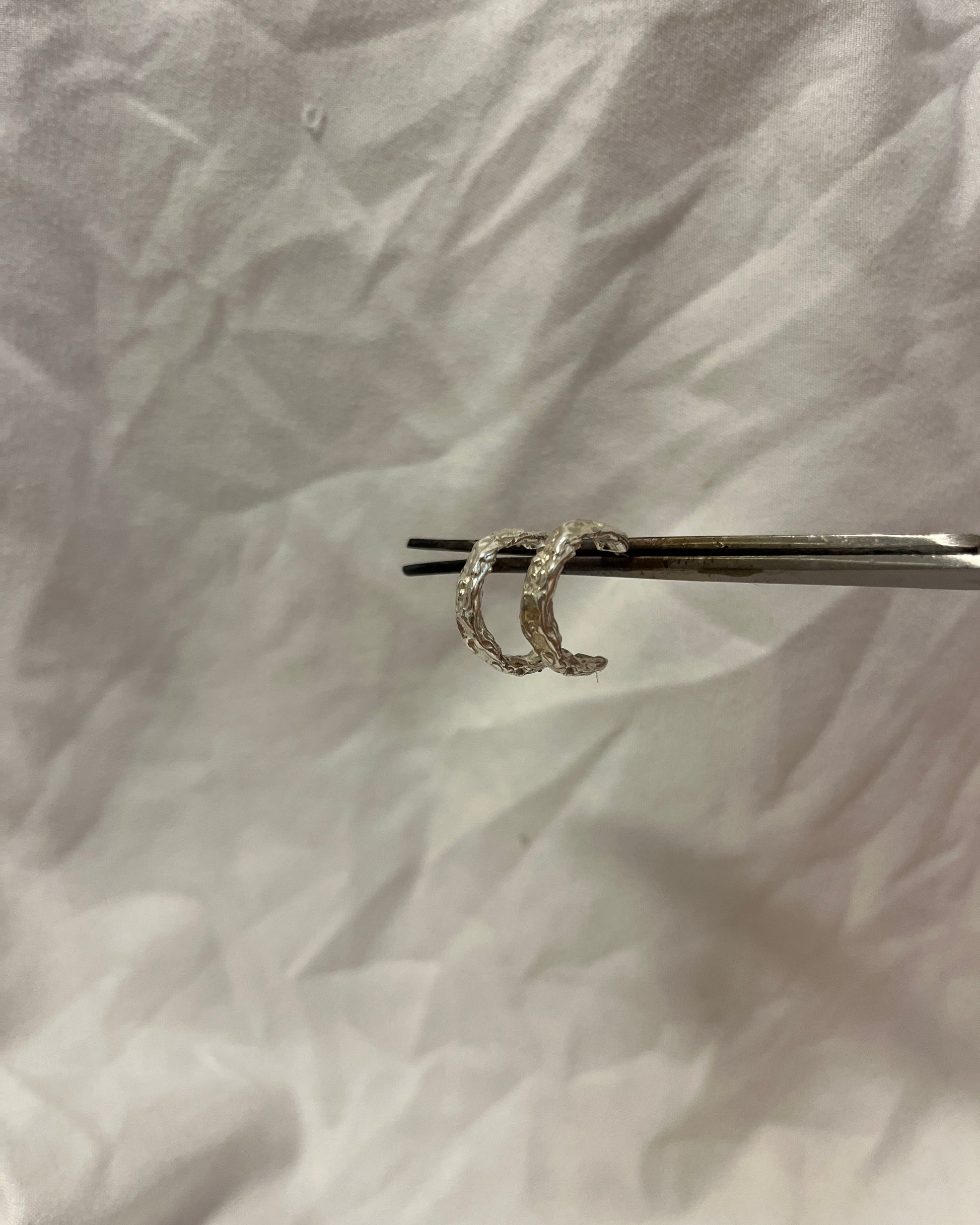 עגילי חישוק בטקסטורת טפטופים וכסף שרוף