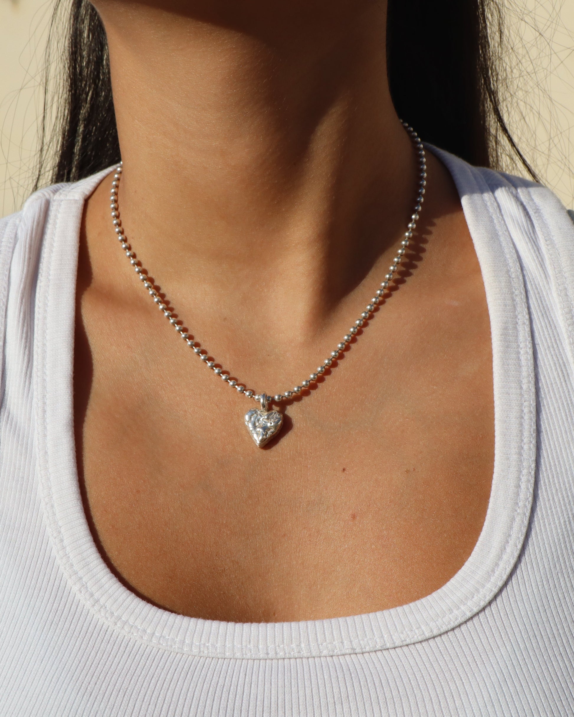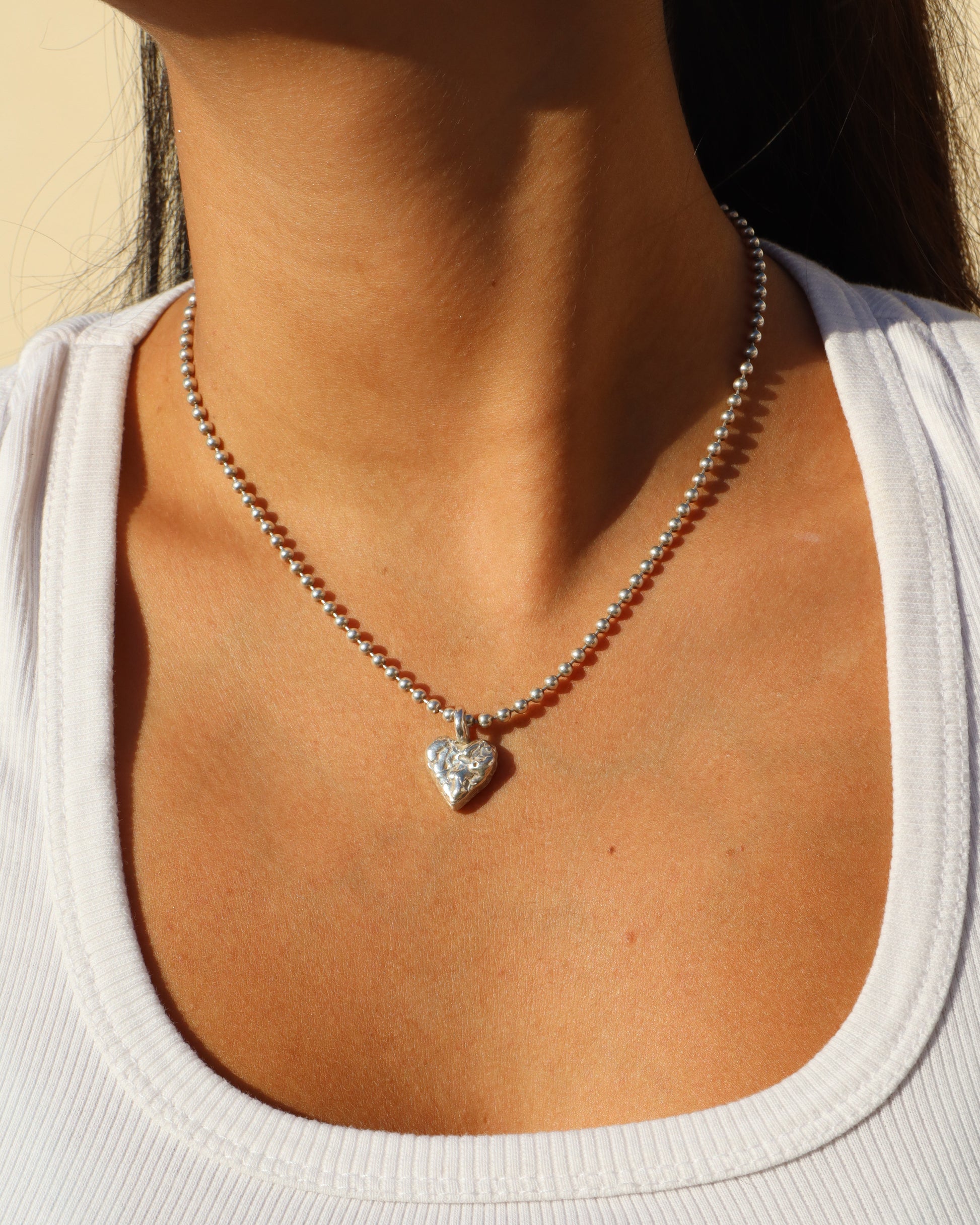 שרשרת דיסקית עם תליון לב צ'אנקי בעלת טקסטורה מיוחדת שלא תוכלי לפספס