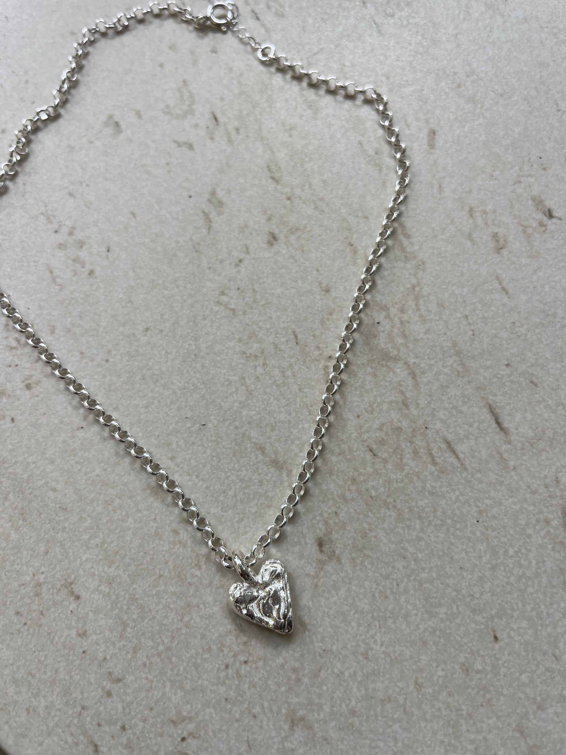 שרשרת רולו עם תליון לב צ'אנקי בעלת טקסטורה מיוחדת שלא תוכלי לפספס
